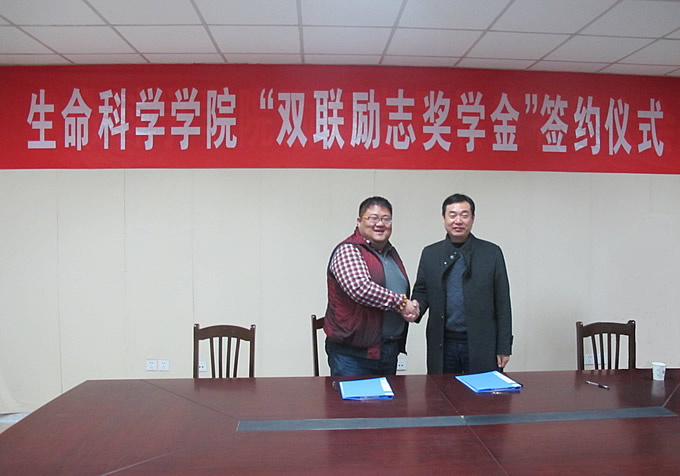 生命科学ky开云(中国)举行“双联励志奖学金”的签约仪式