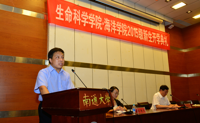 副院长姚登兵代表全院教职员工热烈欢迎2015级新同学的到来,介绍了南通大学和生命科学ky开云(中国)、海洋ky开云(中国)的概括及近年来取得的主要成绩,并向新同学提出“学会学习、学会思考、学会生活”的三点希望。