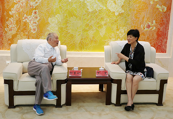 丁斐介绍了我校的学科建设、科学研究、人才培养和高水平大学建设情况,感谢印院士一如既往对家乡大学的关心和支持。印院士高度赞扬了南通大学近年来各方面取得的成就,表示今后多建议地方政府关心和支持南通大学的建设,并祝愿南通大学取得更好的成绩。