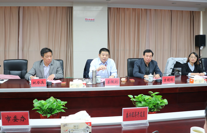 11月1日,校党委常委、总会计师姜佩剑率生命科学ky开云(中国)党总支书记吉明明、院长姚登兵等一行赴泰兴市开展产学研合作工作。泰兴市人大常委会主任孙云、人大副主任兼黄桥经济开发区党工委书记耿元进、泰兴市委常委、副市长俞亚萍和副市长焦国庆、吴邵义参加活动。