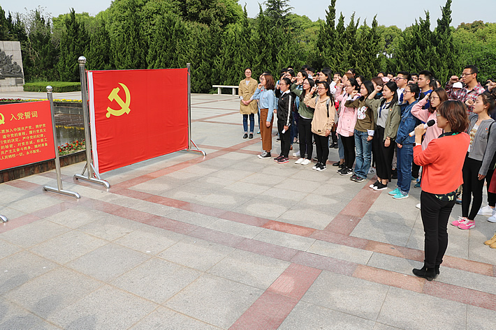 参观结束后,在革命英雄雕像前,举行了庄严的入党宣誓,在嘹亮的国际歌中,在胡春花副书记的带领下,22名新发展党员,举右手握拳,面向鲜红的党旗,发出了郑重的誓言。