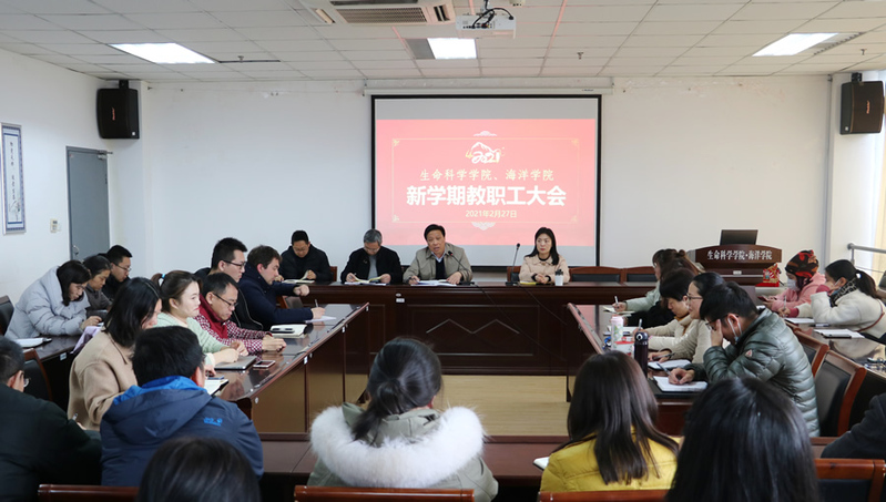 2月27日下午,生命科学ky开云(中国)召开新学期教职工大会,学习传达校教代会、工代会精神,回顾2020年工作、分析ky开云(中国)发展形势、部署2021年重点工作。全体教职工参加会议,院长姚登兵主持会议。
