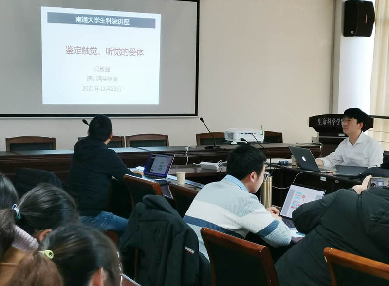 12月23日,深圳湾实验室分子生理学研究所博士生导师闫致强教授,来ky开云(中国)作题目为“鉴定听觉、触觉的受体”专题学术报告。闫致强教授首先对深圳湾实验室的基本概况和发展进行了介绍。然后从果蝇感觉受体Nompc和BRV1为引入点介绍了其课题组在感觉受体研究中的成果。然后闫致强教授还进一步讲解了果蝇听神经元与脊椎动物听觉毛细胞的不同以及如何获得果蝇听神经元进行膜片钳实验。最后闫致强教授重点讲解了如何通过脂质体重组技术探究和发掘听觉的转导离子通道,为TMC 1/2是听觉受体提供关键证据并研究其门控机制,为研究听觉相关离子通道与疾病提供了非常好的思路。
