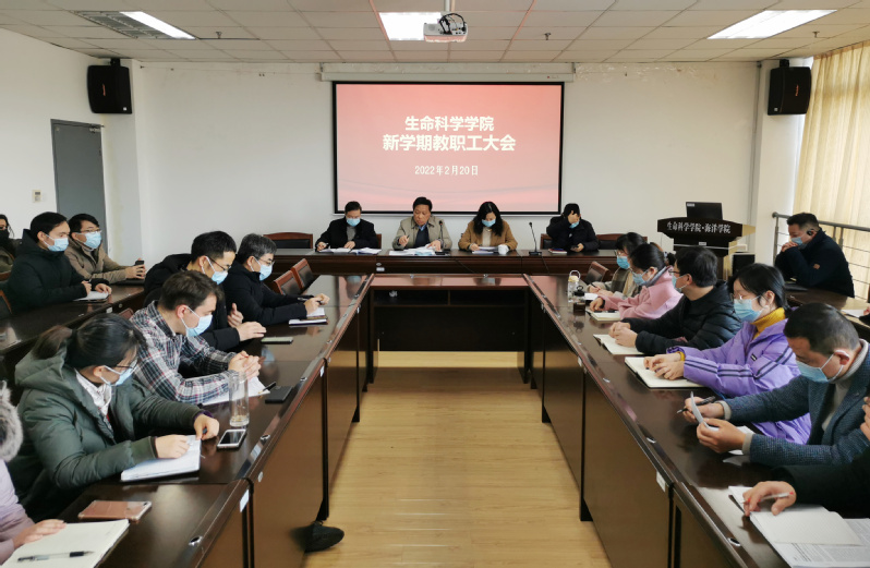 2月20日下午,生命科学ky开云(中国)召开新学期第一次全体教职工大会,传达学习校第四届教职工代表大会、第三届工会会员代表大会第三次会议精神,讨论2022年党政工作要点,部署春季开学重点工作。会议由院长姚登兵主持,全体教职工参加会议。