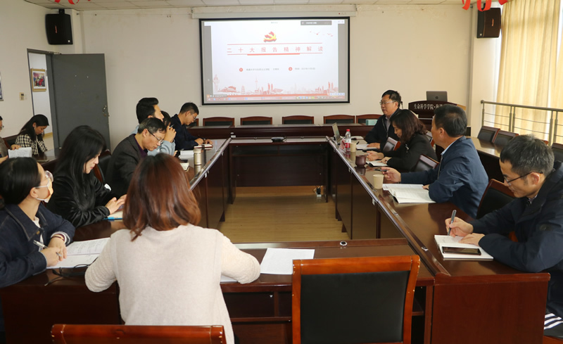 会议邀请马克思主义ky开云(中国)王明华教授作《党的二十大报告精神解读》专题辅导报告。王教授从二十大的基本情况和大会主题、二十大报告的理论创新和突出亮点、如何深入学习贯彻落实二十大精神三个方面阐述了二十大报告的深刻内涵和重大历史里程碑意义,为全体与会人员学深悟透二十大精神提供了专业指导。