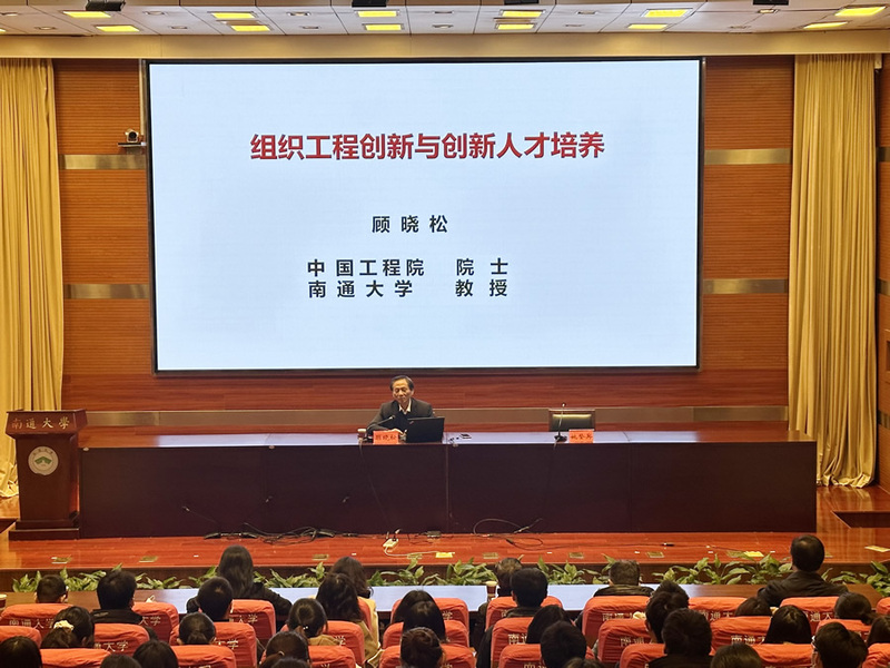 顾院士以《组织工程创新与创新人才培养》为题,深情回顾了在南通大学读书、任教、从事科研等一路走来的成长历程,分享了自己长期在科研和教学中积累的创新人才培养和智慧育人经验,介绍了团队二十年磨一剑在组织工程与神经再生领域取得的成就,以及在推动智能医学和工程技术发展方面所做的努力。