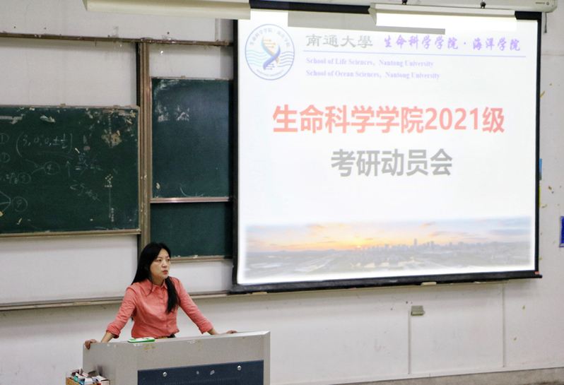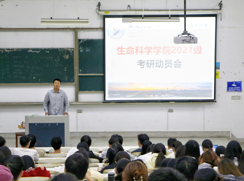 刘东从自身的经历和自己学生的例子出发,表明了生物行业读研的重要性,鼓励同学们继续深造,提高就业竞争力。此外,他重点做了生物学硕士的招生宣讲,通过算一笔时间账和效益账的形式,帮助同学们认识到在本校以及本院读研的裨益,号召更多的同学报考南通大学。