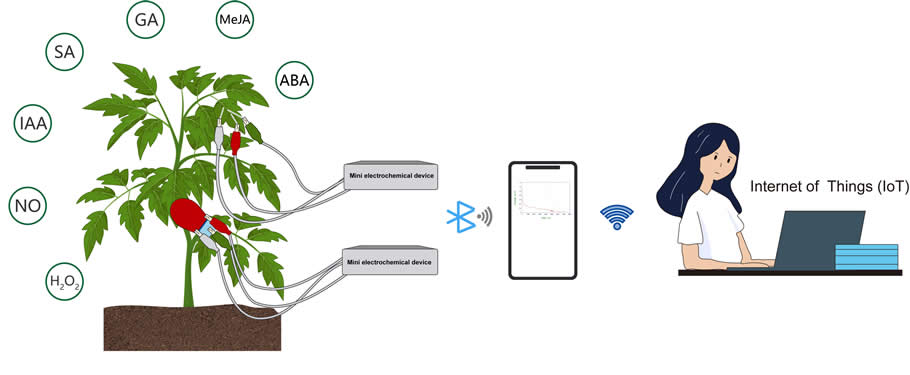 植物信号分子在调节植物生长发育以及对环境的反应中起着至关重要的作用,目前已开发许多检测方法。但植物信号分子原位实时检测技术和可现场部署的传感器的发展将是植物研究和农业的关键突破。电化学方法因其易于操作、高灵敏度和高选择性而受到广泛关注。本文总结了电化学检测植物信号分子的研究进展,主要包括电化学传感器的各种电极类型及其应用。通过多种纳米材料,提高电极检测的选择性和灵敏度。通过实例介绍表明电化学检测的研究趋势。此外,强调电化学传感器的创新性及适用性。总之,电化学传感器可以实现原位、实时智能捕获植物信号分子ky开云手机版变化,具有重要意义,促进植物学基础研究和智能农业发展。