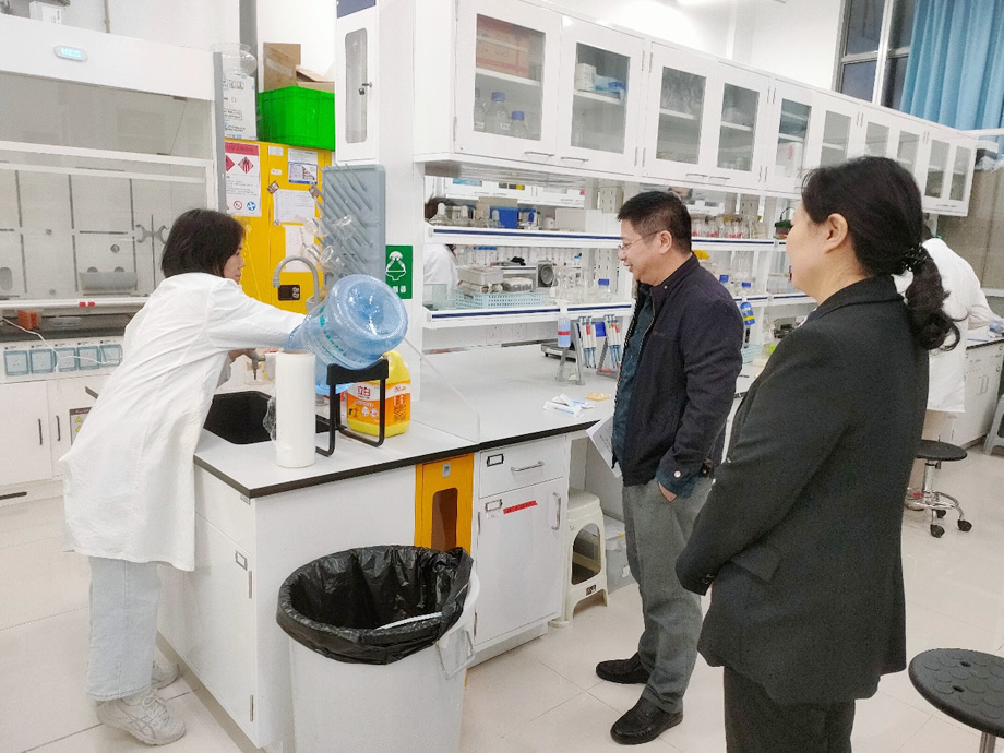 2024年11月7日下午,ky开云(中国)党委书记季凌燕,副院长张健,实验中心副主任周蓉一行对ky开云(中国)科研实验室、公共平台及教学实验室进行了安全工作全面检查。检查人员深入各个实验室,重点检查了仪器设备、化学试剂存放、卫生状况等方面问题,并对实验室相关安全管理工作提出了具体要求。